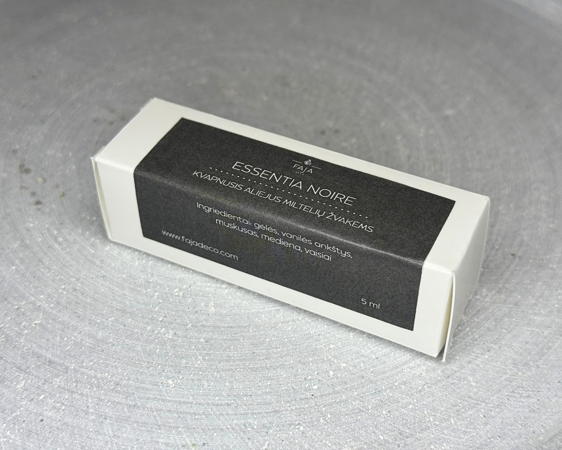 Pasinerkite į paslaptingą ir rafinuotą aromato pasaulį su „Essentia Noire“. Tai kvapas, sukuriantis ypatingą ir prabangią atmosferą Jūsų namuose.