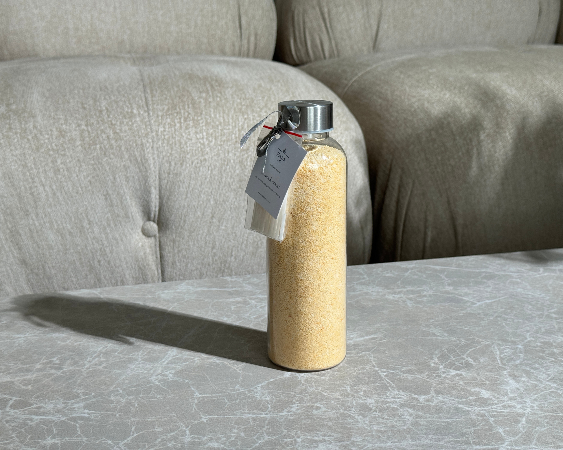 Rinkinį sudaro: perdirbto plastiko buteliukas, 300g spalvingų augalinio vaško miltelių.